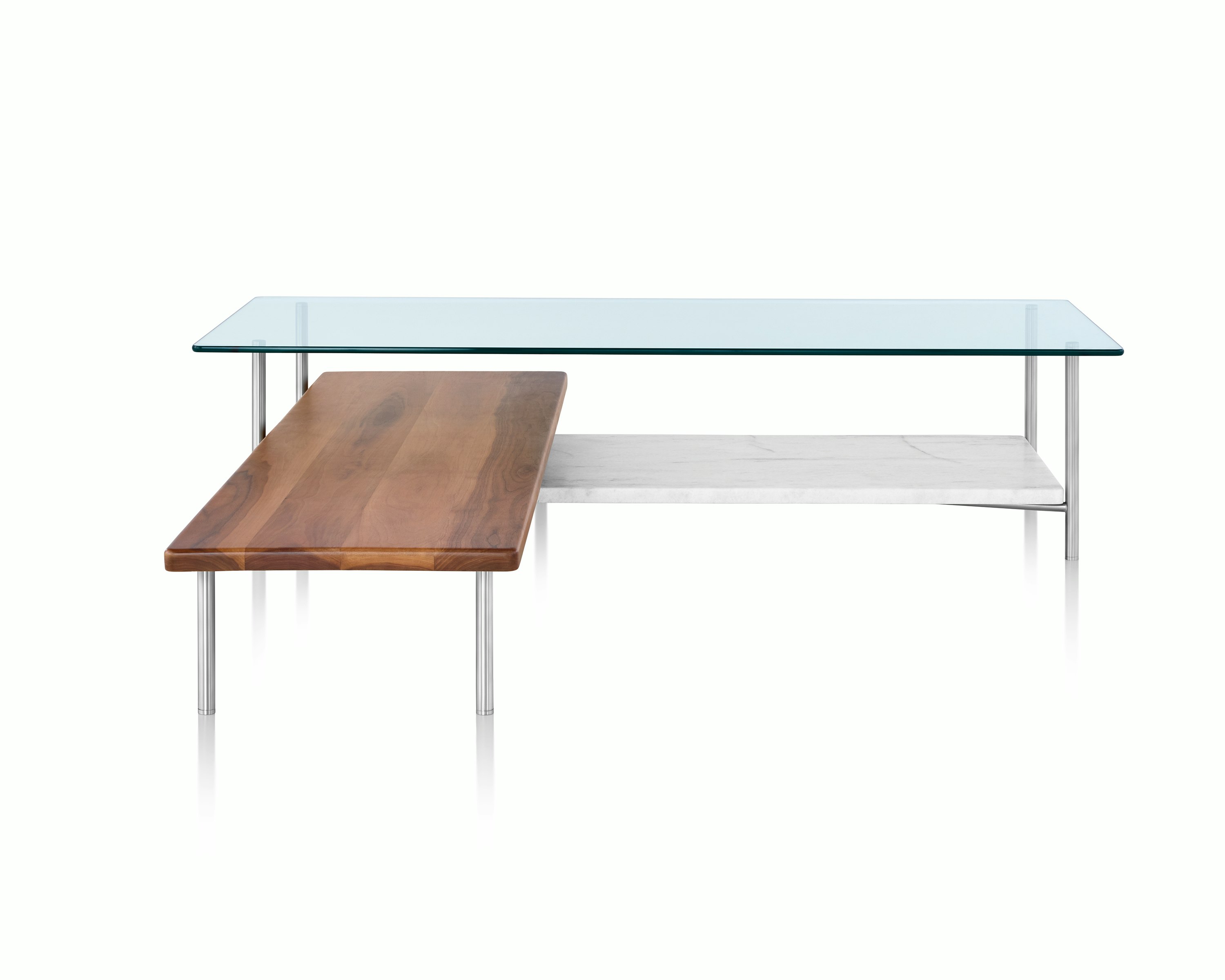 The Coffee Table by Alexander Girard from Knoll delivers clean lines and organic shapes. Available in a variety of veneers, this asymmetrical table features tubular steel legs for durability and an amoebic shape that brings a touch of whimsy to offices, lounges, or reception areas.