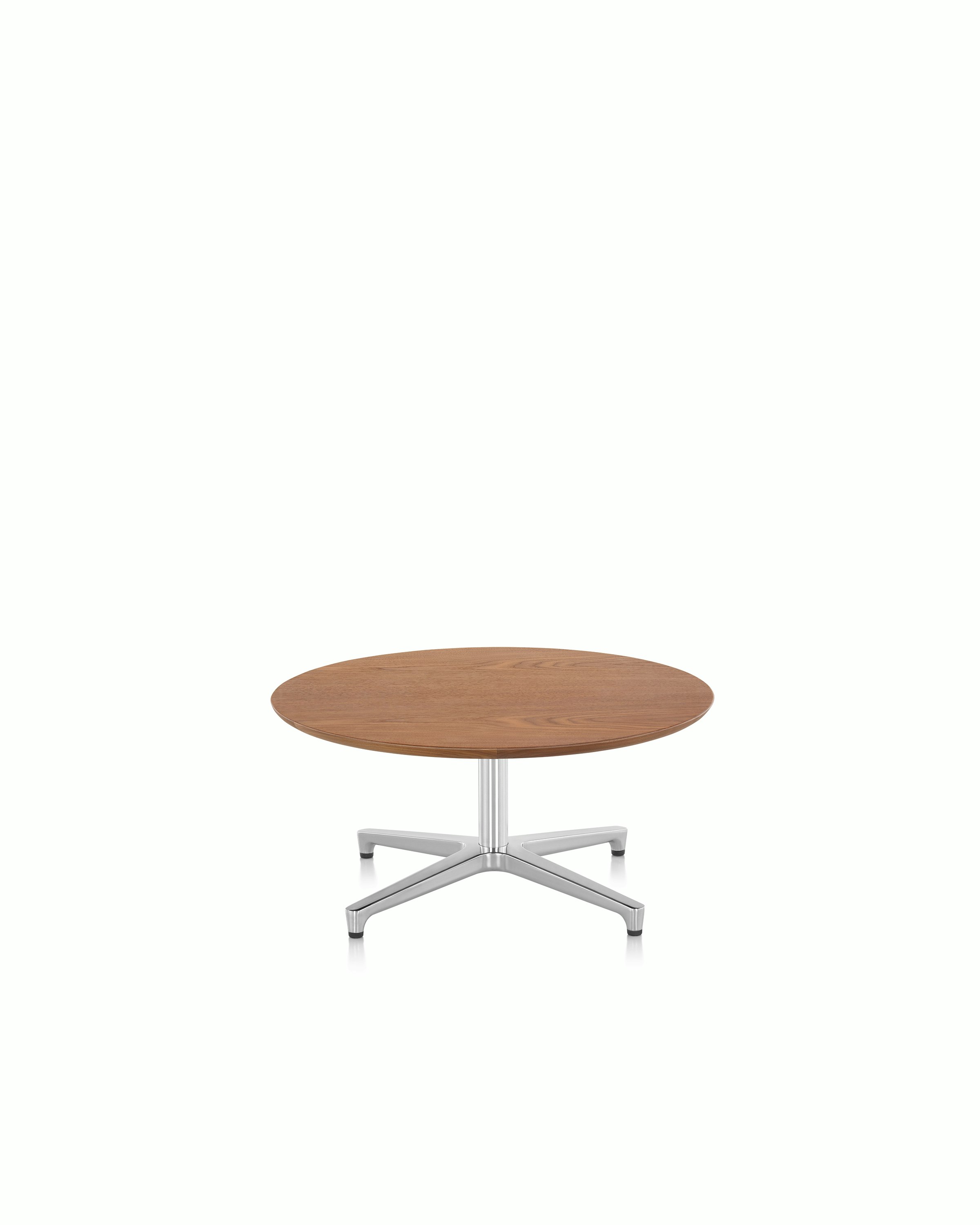 The Saiba Coffee Table from Geiger is designed with a thin, elegantly beveled top that appears to hover over its pedestal base. Its top is available in a range of diameters and your choice of back-painted glass, laminate, or veneer.