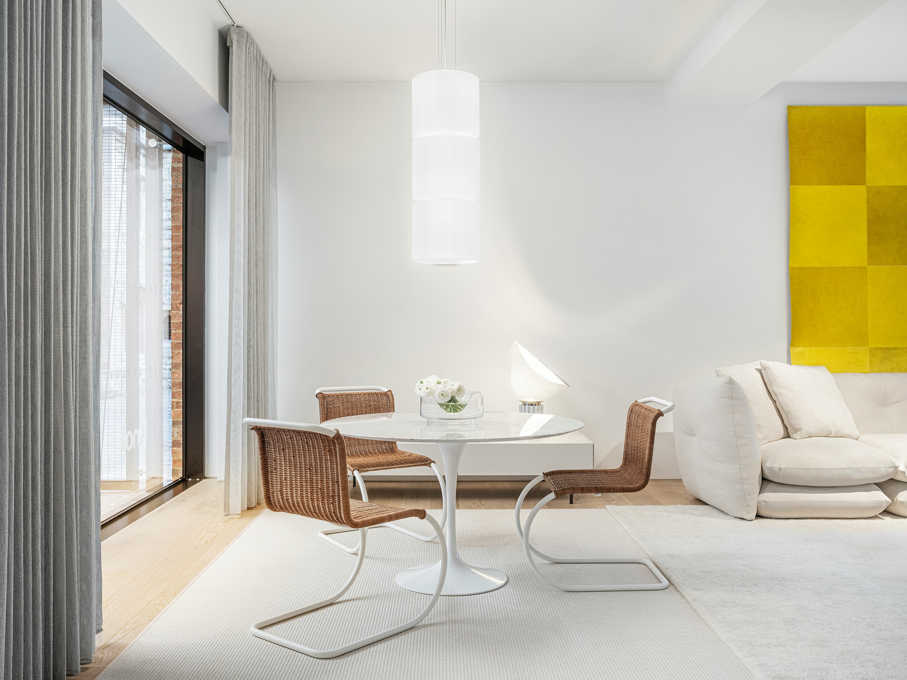 Eero Saarinen designed his now famous Saarinen Table for Knoll with the intention of finding an alternative to the “slum of legs” he observed beneath chairs and tables. After years of iterating on his designs, he came up with an elegant pedestal base. One of the most recognizable tables of the modern era, the Saarinen Dining Table features a beveled tabletop and gracefully shaped cast-aluminum base inspired by a drop of high-viscosity liquid. Sleek and stylish, it enhances lounge settings for dining or conferences.