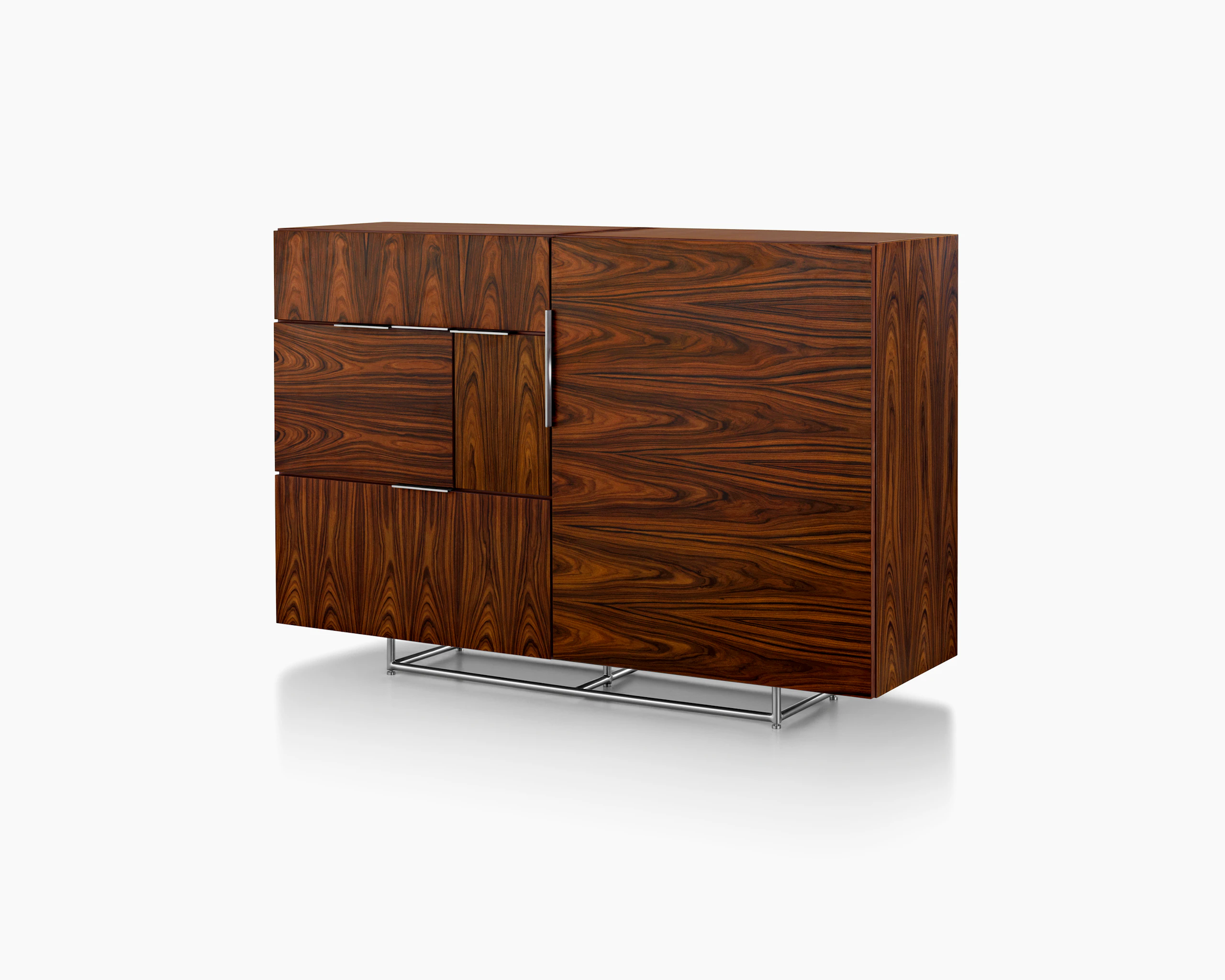 Elegance and functionality fall into place with the Domino Sideboard from Geiger. Built with Geiger's signature attention to detail, this modern sideboard cabinet redefines workplace storage with its sleek design and smart layout. Meticulously detailed and versatile, it features mitered corners and customizable modules for filing, storage, and shelving needs. Whether serving as a storage unit or a stylish space divider in your office, the Geiger Domino Sideboard embodies practical sophistication.
